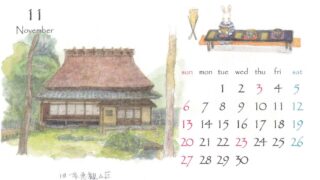 画家・伊東雅江さんの2016年12月の「鎌倉カレンダー」より。江ノ電の和田塚と由比ヶ浜の中間の線路沿いに、俳人の高浜虚子の住んでいた家があります。その一角には「波の音 由比ヶ濱より 初電車」という句碑が立てられていて、鎌倉に住み多くの句を詠...