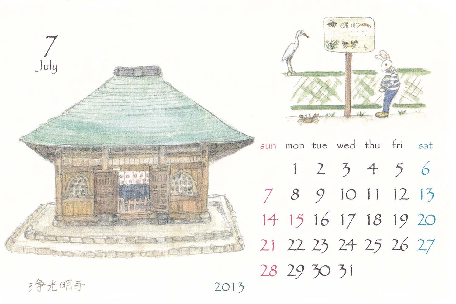 画家・伊東雅江さんの「鎌倉カレンダー」2013年7月より。