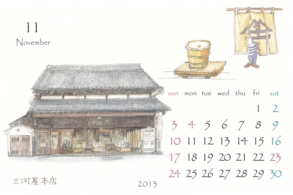画家・伊東雅江さんの「鎌倉カレンダー」2013年11月より。