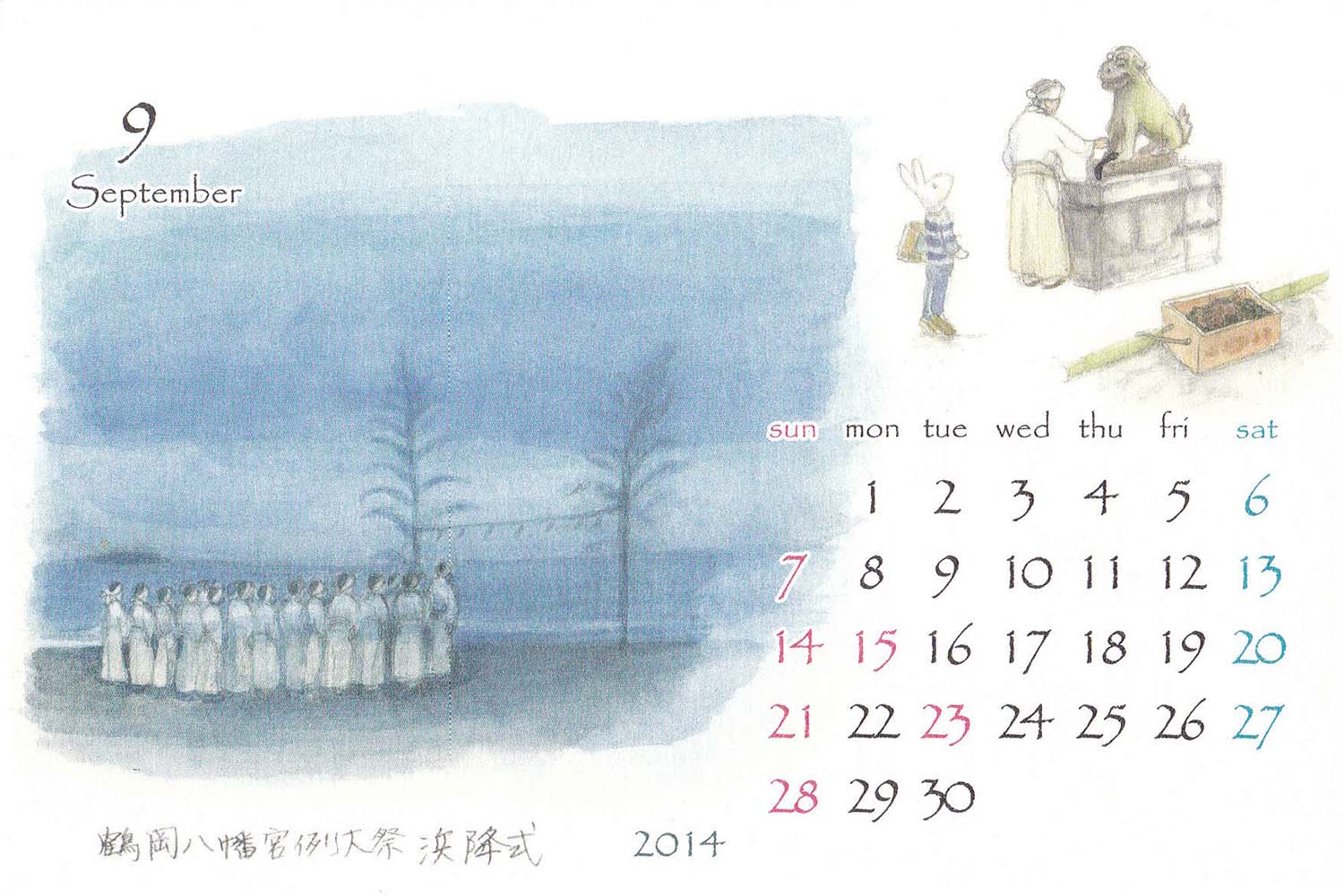 画家・伊東雅江さんの「鎌倉カレンダー」2014年9月より。