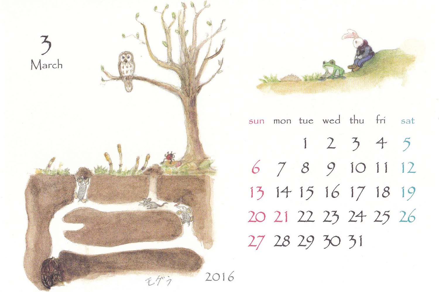 画家・伊東雅江さんの2016年3月の「鎌倉カレンダー」より。