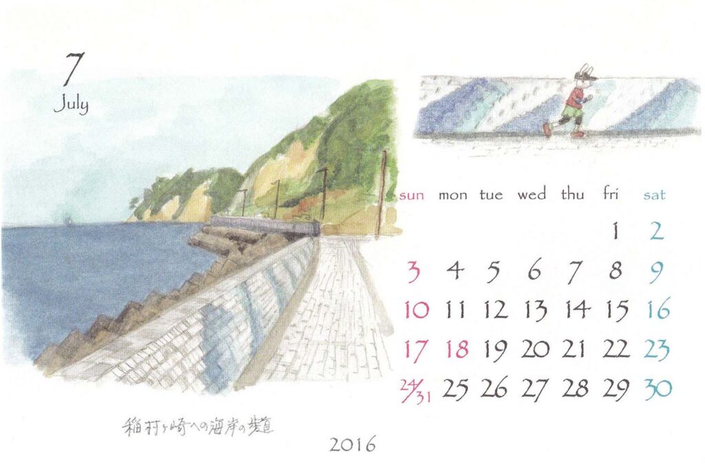 画家・伊東雅江さんの2016年7月の「鎌倉カレンダー」より。