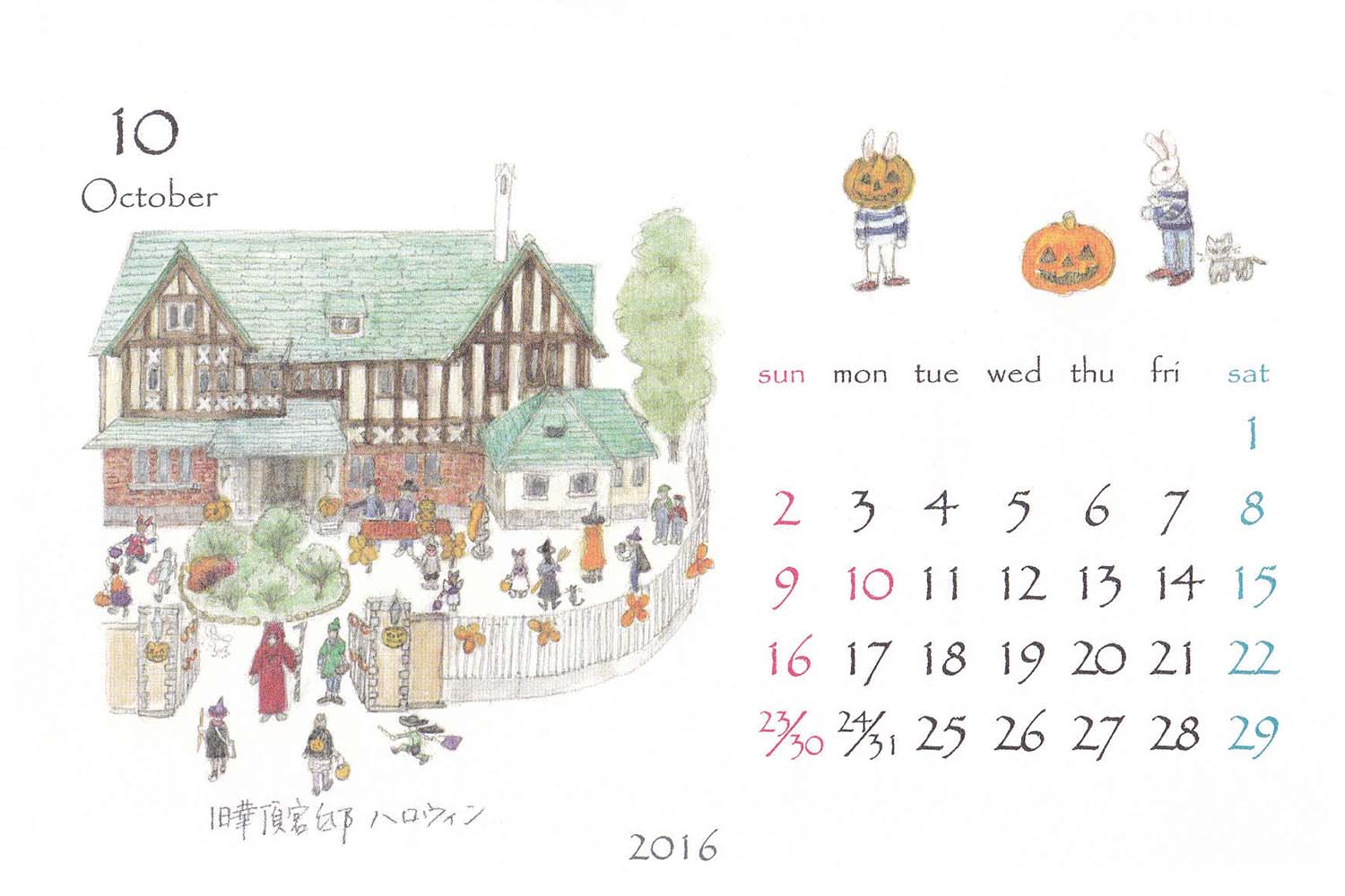 画家・伊東雅江さんの2016年10月の「鎌倉カレンダー」より。