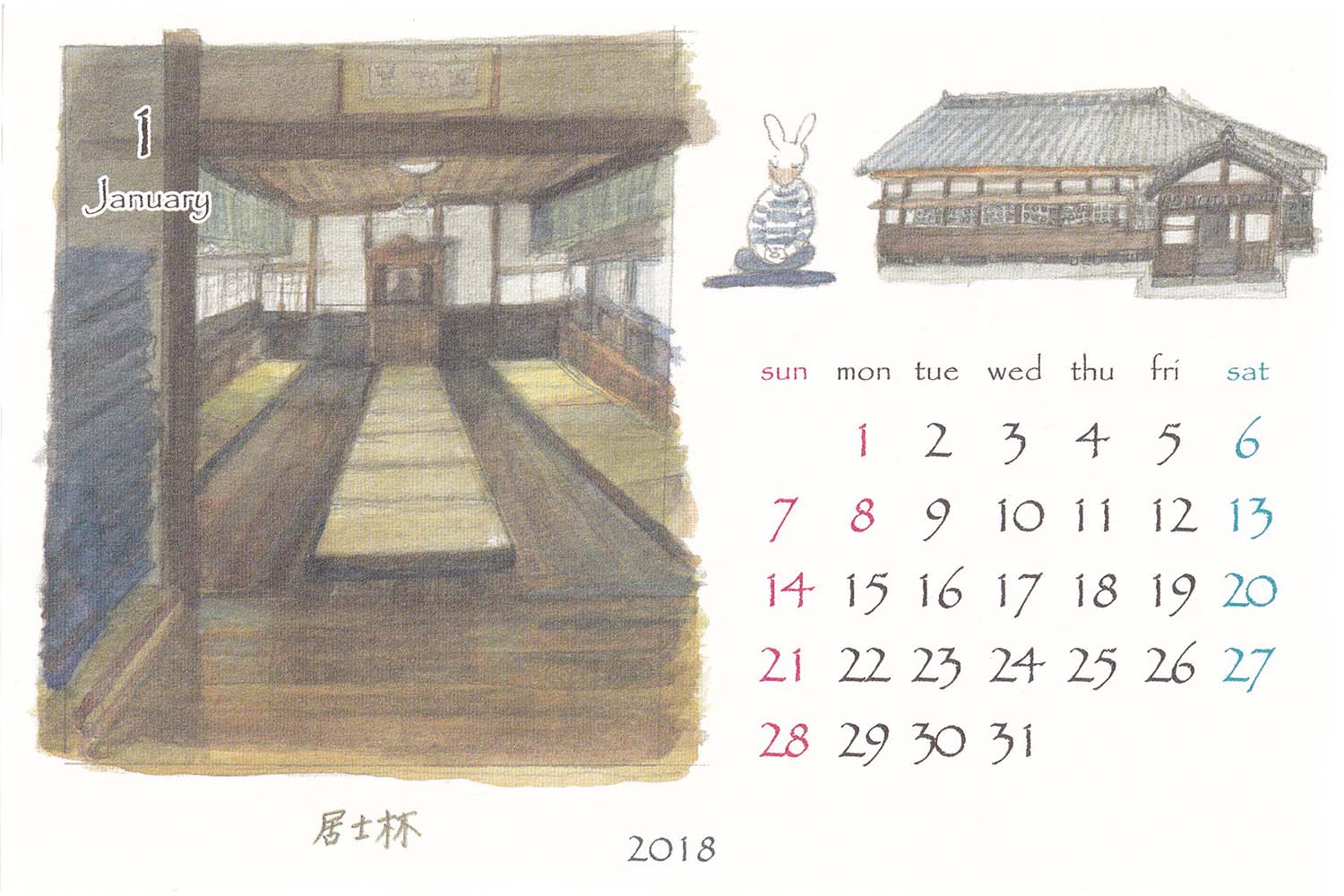 画家・伊東雅江さんの「鎌倉カレンダー」2018年1月より。