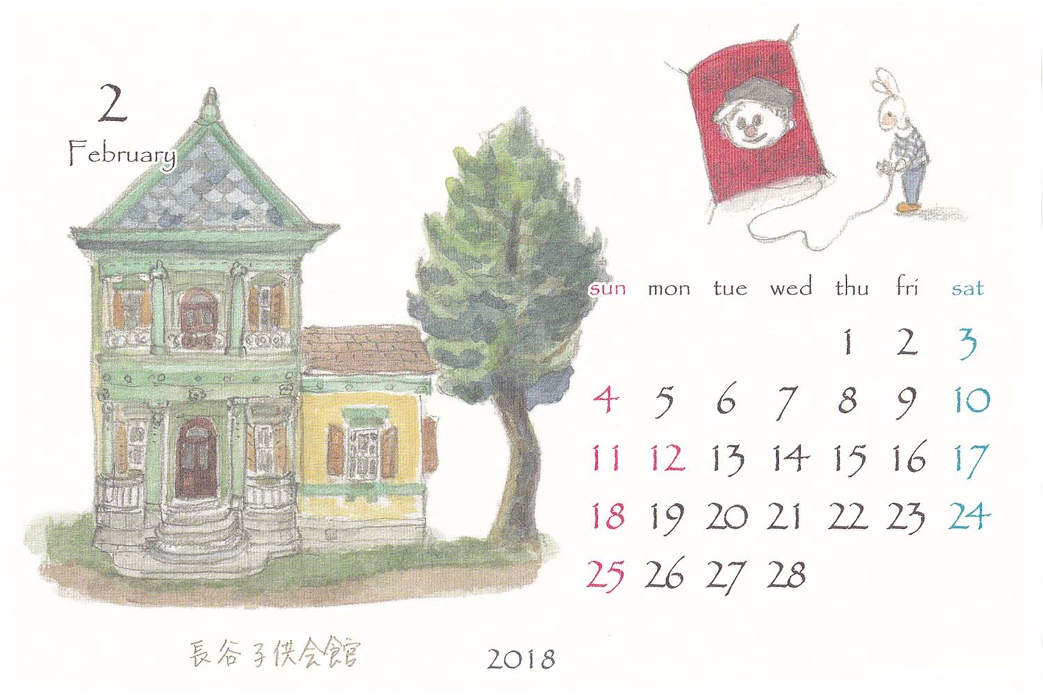 画家・伊東雅江さんの「鎌倉カレンダー」2018年2月より。