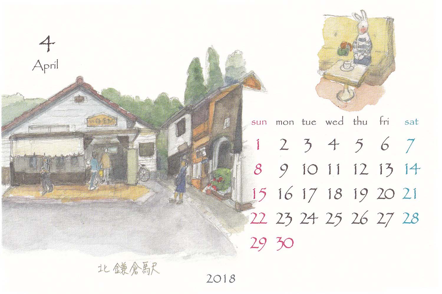 画家・伊東雅江さんの「鎌倉カレンダー」2018年4月より。