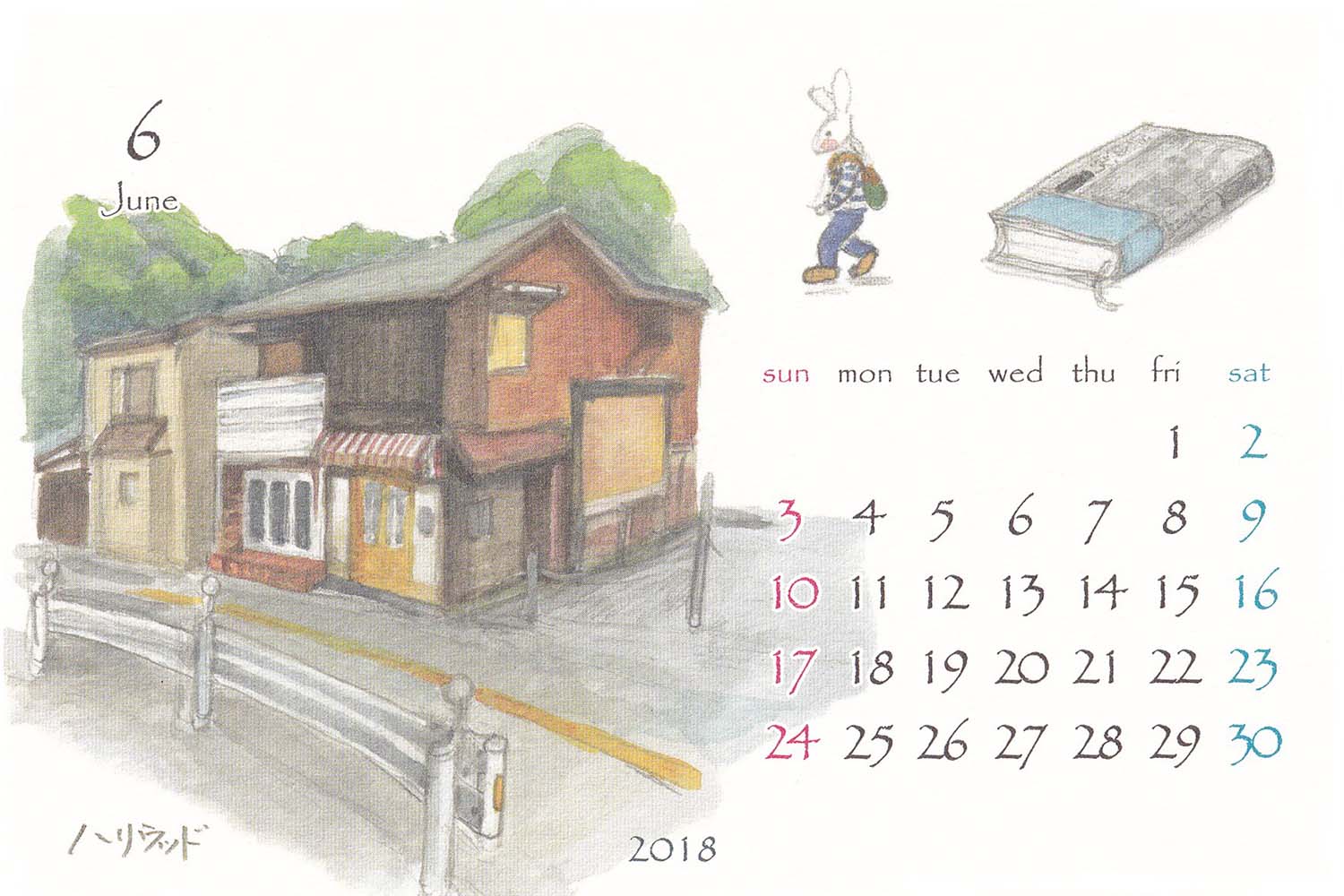 画家・伊東雅江さんの「鎌倉カレンダー」2018年6月より。