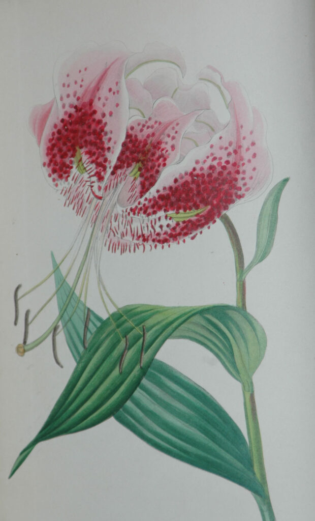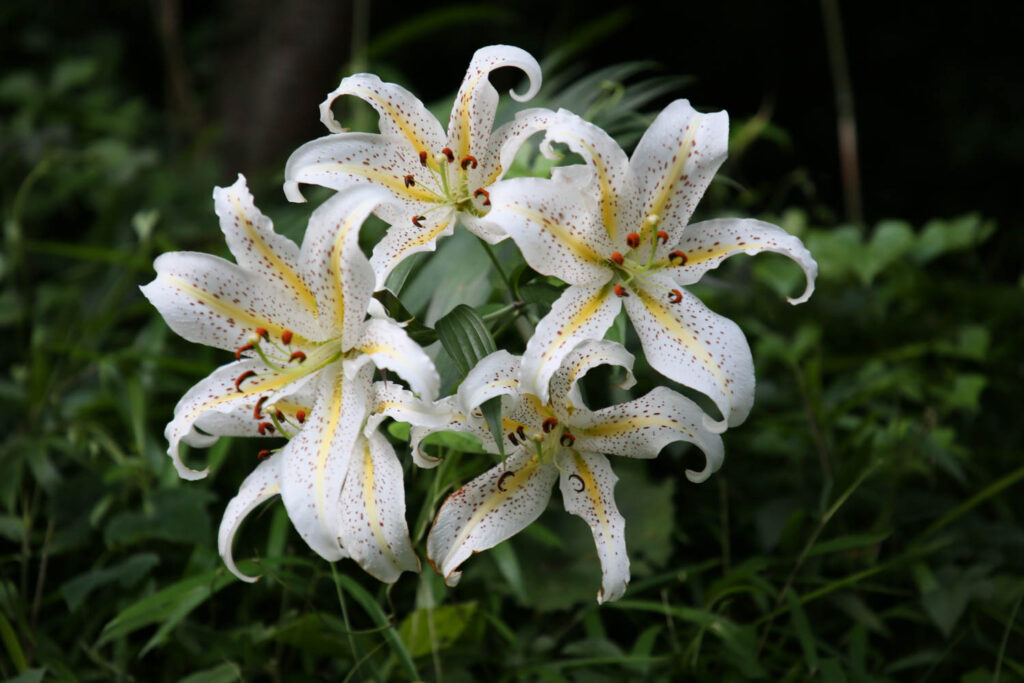 一方、日本のユリはあたりまえに野に咲く花。幕末にシーボルトが日本の植物の種子や球根などをヨーロッパに持ち帰り、カノコユリを紹介すると「ルビーやガーネットのように美しい」と、たいそうな評判になった。