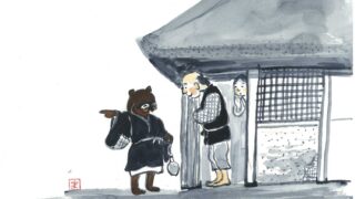 鎌倉の深い山の奥に瑞泉寺があります。このお寺の前には管理人の老夫婦が住んでいました。ある晩、近くの寺のお坊さんという人がお酒をもって訪ねてきました。老夫婦は囲炉裏に案内し、あたたかい食事をふるまいました。それからこのお坊さんがよく食べに来る...