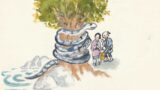 勝負は夫人の旗色が悪くて、とうとう最後の一枚でも負けてしまいました。困った夫人が日頃から信心しているお地蔵さまに念じたところ、裸のお地蔵さまが双六盤の上に現われました。身代わりとなって窮地を救ってくれたのです。