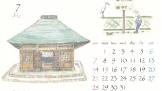 画家・伊東雅江さんの「鎌倉カレンダー」2017年10月より。北鎌倉駅から鎌倉方面へ向かい小袋坂を降りる手前の建長寺は、鎌倉五山第一位、山を背に建つ大きなお寺です。その山門(三門)は「タヌキの三門」とも呼ばれ、建立にタヌキが活躍したという昔話...