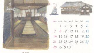 画家・伊東雅江さんの「鎌倉カレンダー」2017年10月より。北鎌倉駅から鎌倉方面へ向かい小袋坂を降りる手前の建長寺は、鎌倉五山第一位、山を背に建つ大きなお寺です。その山門(三門)は「タヌキの三門」とも呼ばれ、建立にタヌキが活躍したという昔話...