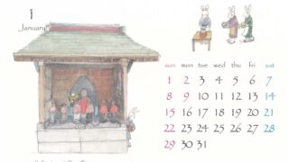 画家・伊東雅江さんの「鎌倉カレンダー」2017年10月より。北鎌倉駅から鎌倉方面へ向かい小袋坂を降りる手前の建長寺は、鎌倉五山第一位、山を背に建つ大きなお寺です。その山門(三門)は「タヌキの三門」とも呼ばれ、建立にタヌキが活躍したという昔話...