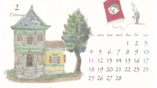 画家・伊東雅江さんの2016年2月の「鎌倉カレンダー」より。2015年のはじめ頃まで、雪ノ下教会の近くに、木造の趣きのある洋館がありました。大正・昭和に活躍し、旧歌舞伎座や鳩山邸、鎌倉国宝館の設計などで有名な建築家 岡田信一郎の鎌倉邸として...