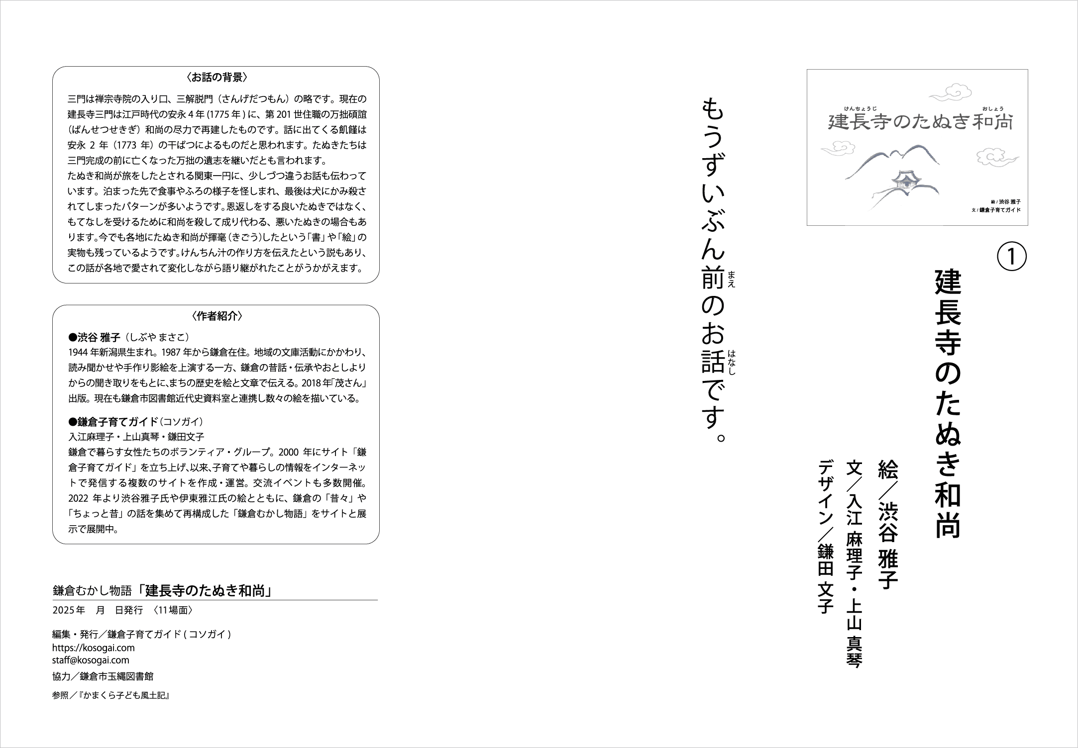 建長寺の裏山のたぬきたちは熱心な和尚さんに感動し、自分たちもお手伝いをしたいと、和尚さんに化けて托鉢することにしました。