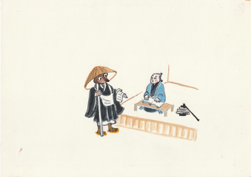 旅籠の主人が記念に一筆お願いすると、お坊さんは快く受けて