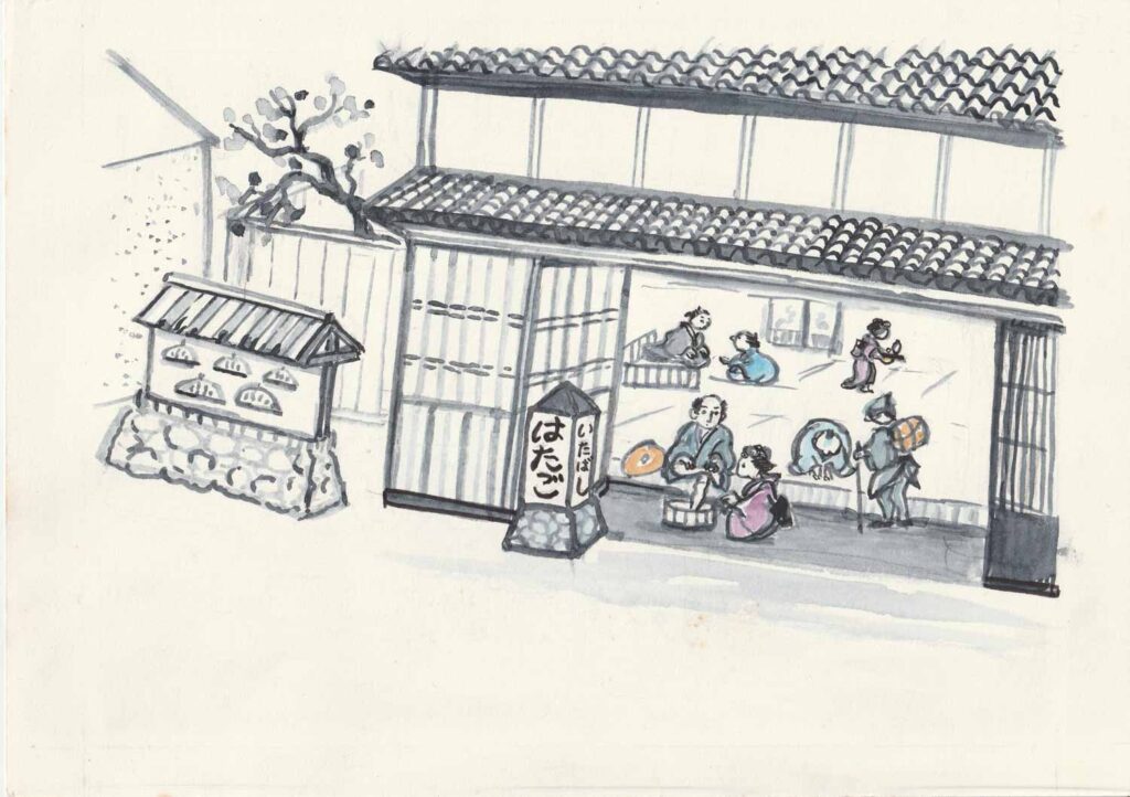 ある日、たぬきのお坊さんは中山道板橋宿の旅籠に泊まりました。