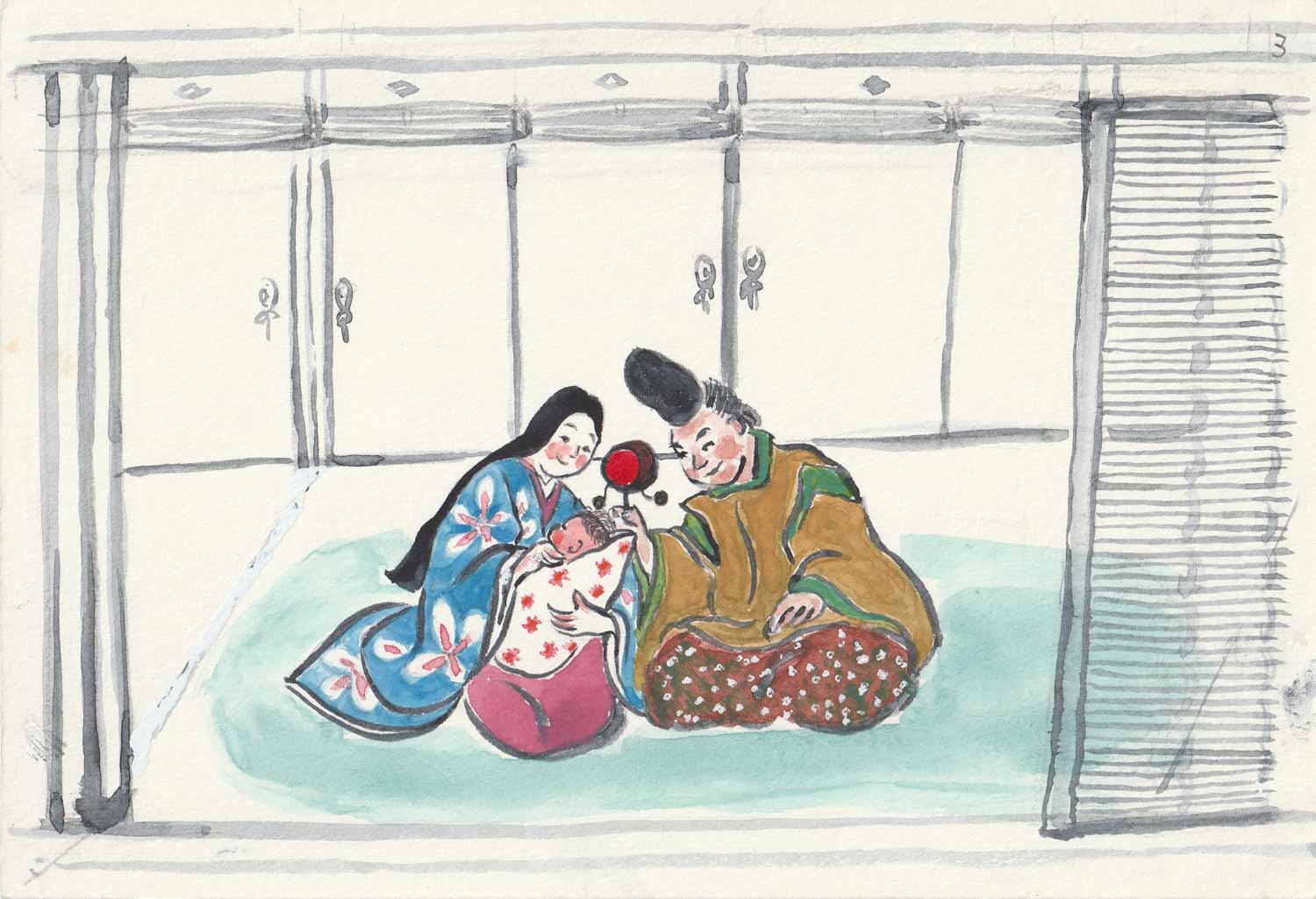 長者夫婦は、観音さまに授かった子として、たいせつに育てました。娘はすくすくと愛らしく成長して、3歳になりました。